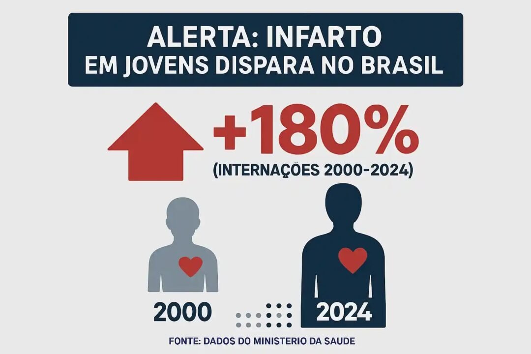 Entre 2022 e 2024, mais de 234 mil atendimentos hospitalares por infarto e Acidente Vascular Cerebral (AVC) foram registrados no Brasil em pessoas com menos de 40 anos, segundo dados do Ministério da Saúde. Desses casos, 7,8 mil resultaram em morte, um número que acende o alerta sobre o avanço de doenças cardiovasculares entre os mais jovens.